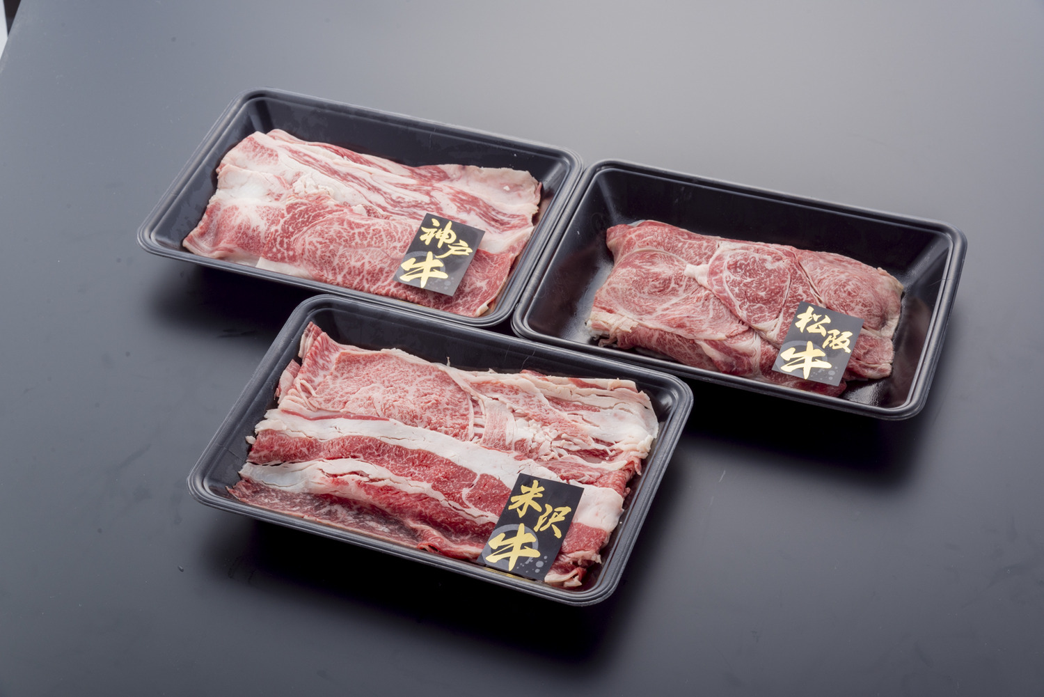 産地:松阪牛(三重県)、神戸牛(兵庫県)、米沢牛(山形県)