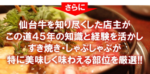 仙台牛は脂身が甘く、しつこくなく上品なため、すき焼き・しゃぶしゃぶに向いているお肉と言えます。