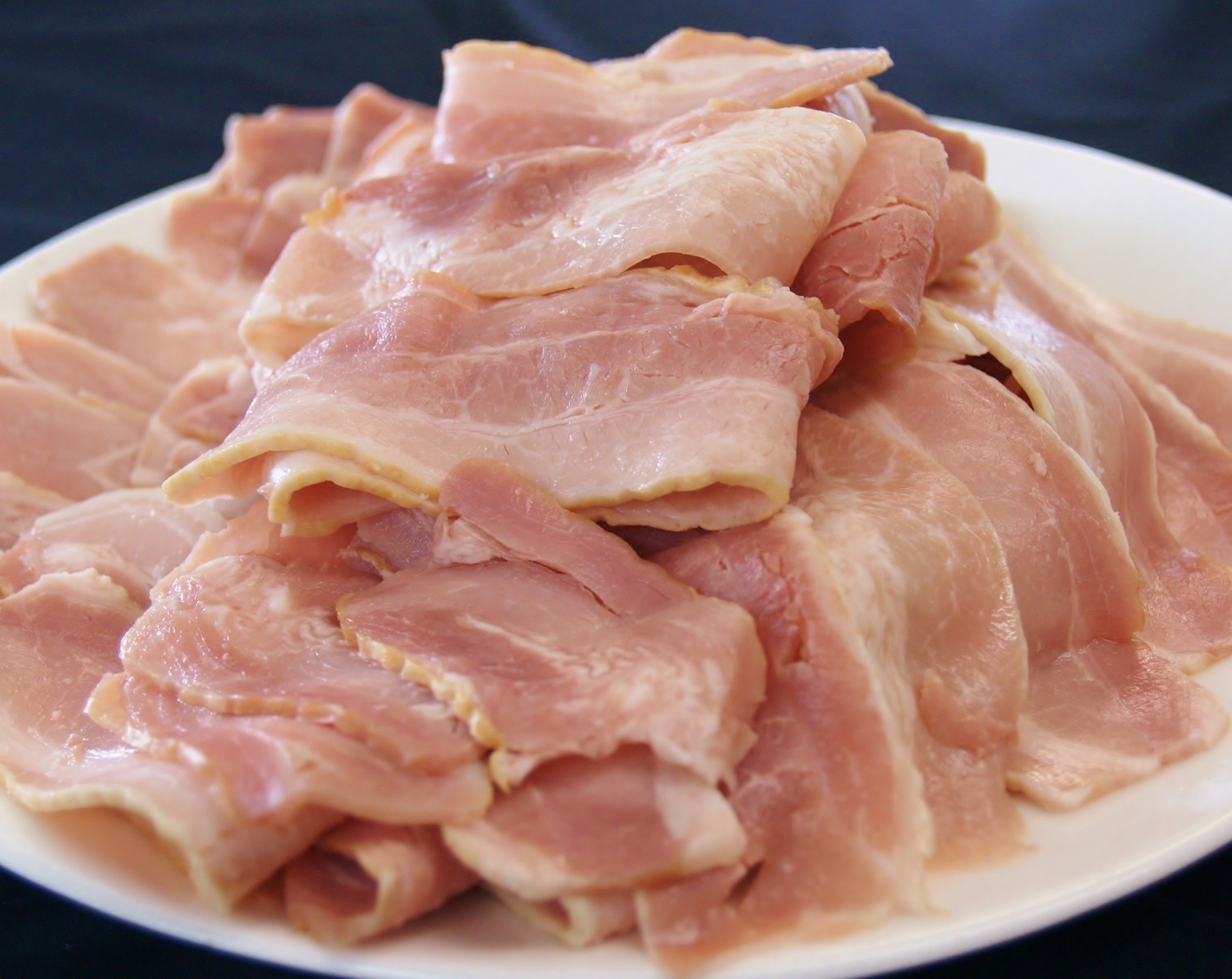 発色材・着色料不使用で、肉の色合いと風味を生かした【無塩せきベーコンスライス2.0kg】